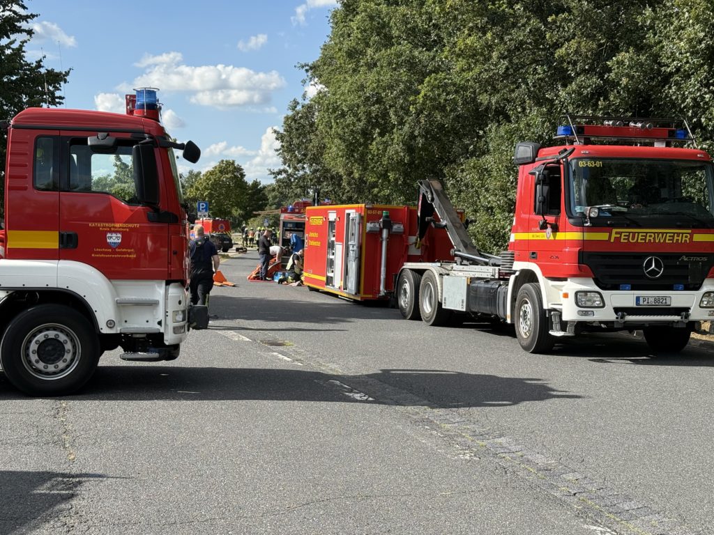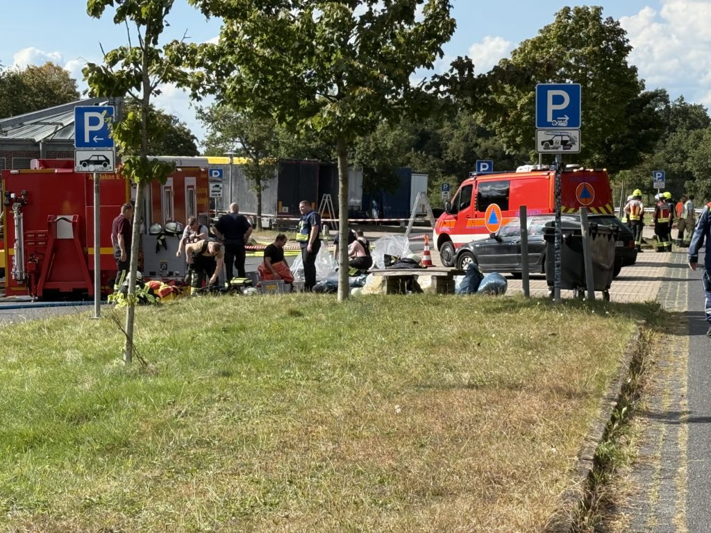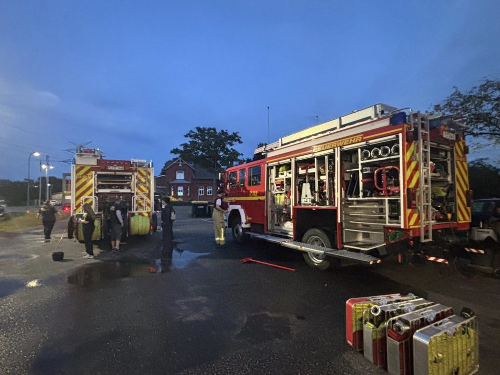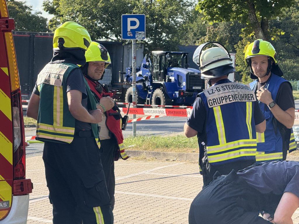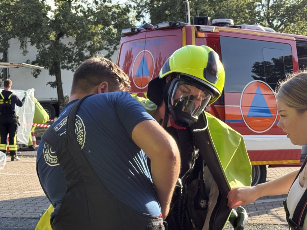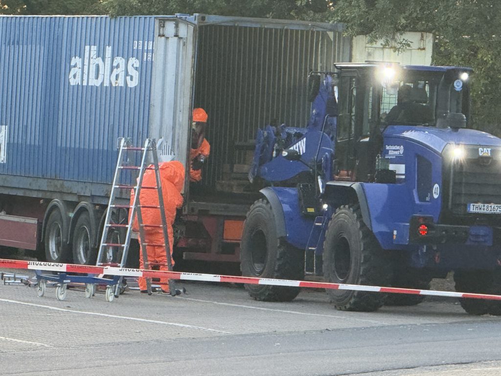 Zusätzlich zu den o.g. Kräften waren auch die THW-Ortverbände aus Barmstedt, Itzehoe und Elmshorn mit ihren Fachberatern und den Fachgruppen Bergen & Räumen zur Unterstützung beim Entleeren des Containers vor Ort. Die Autobahnmeisterei Steinburg sowie die Landespolizei Schleswig-Holstein übernahmen die Absperrung der Einsatzstelle. Die Rettungsdienst-Kooperation in Schleswig-Holstein (RKiSH) sicherte uns alle gegen eventuelle Not- und Unfälle ab, und die DRK-Bereitschaften aus Itzehoe sowie Glückstadt übernahmen zusammen mit Kameraden der Johannitern aus Steinburg die Verpflegung für die rund 100 Kameraden bei dem mehr als 10-stündigen Einsatz. Der Kreisfeuerwehrverband Pinneberg versorgte uns nach dem Einsatz mit frischen Schläuchen und neuen Atemluftflaschen.