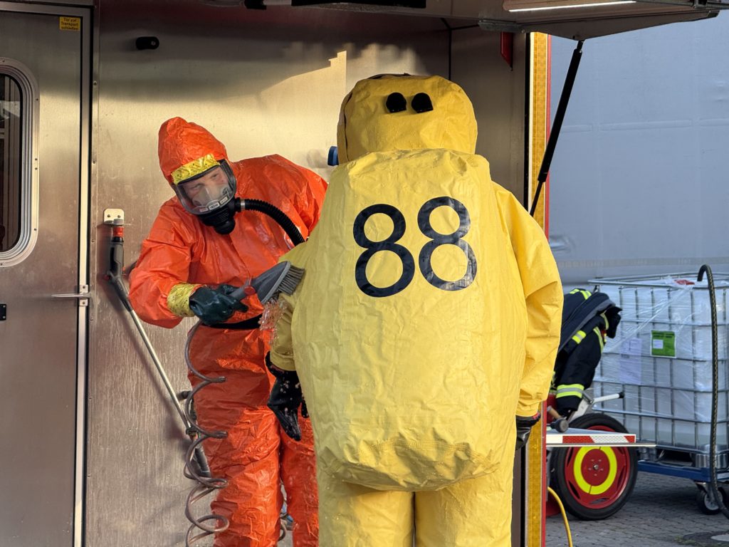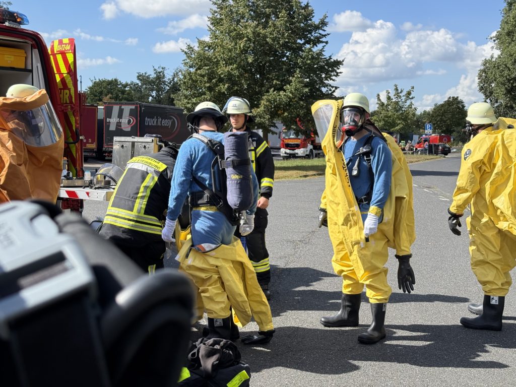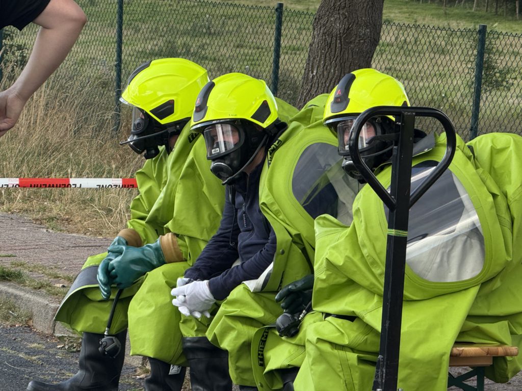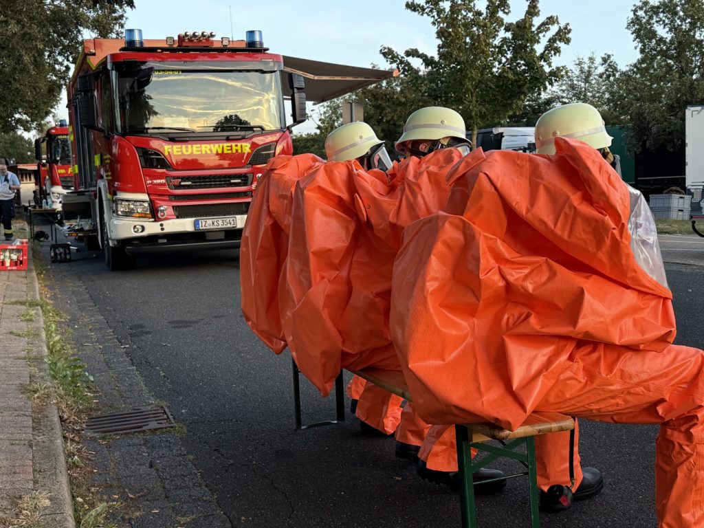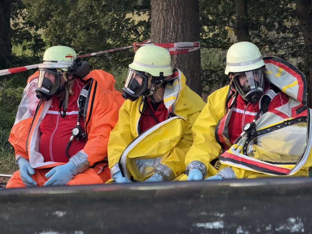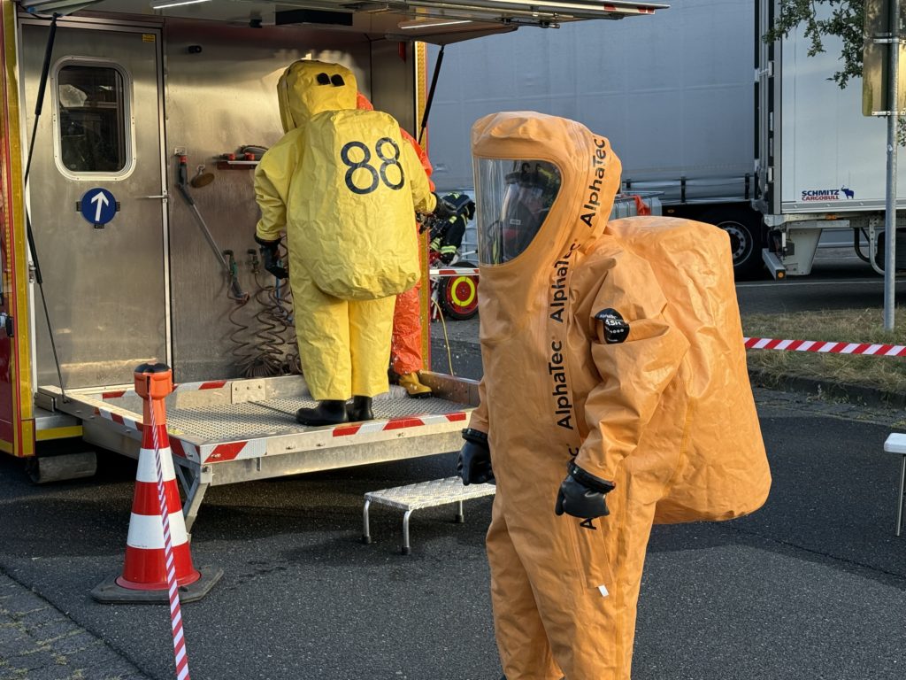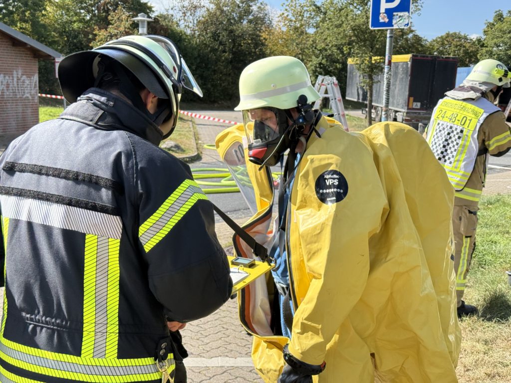 Beim Gefahrstoff-Einsatz ziehen die Feuerwehrleute über all das Atemschutz-Equipement dann noch einen luftdichten Schutzanzug (den so genannten CSA, Chemikalien-Schutz-Anzug), der den Sichtbereich weiter einschränkt und die Belastung weiter erhöht. Das für den Einsatz zur Verfügung stehende Personal geht also relativ schnell aus.