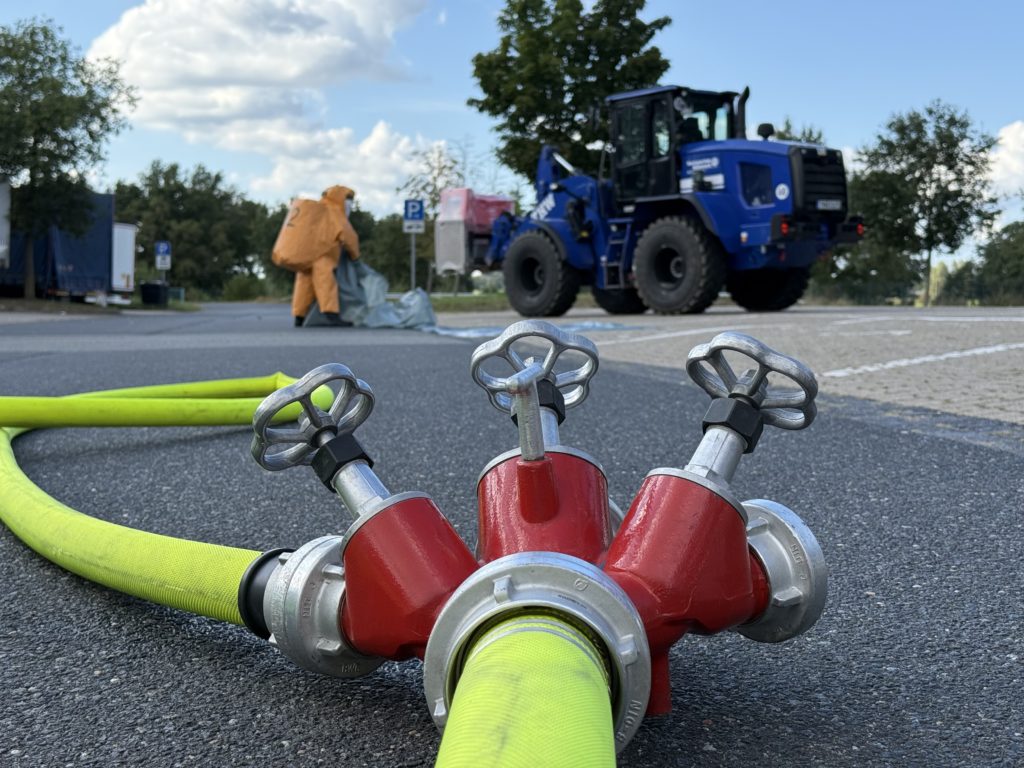 „Vollalarm TH X Nutzfahrzeug auf BAB“ – das war um 13:09 Uhr diejenige Alarmierung, bei der schlussendlich die meisten Kameraden unserer Feuerwehr ihren restlichen Samstag verbringen sollten. Das „X“ steht (wie auch einige von uns dann erst an der Einsatzstelle feststellten 😀), für Gefahrstoffe. Es ging also irgendwie um einen LKW, der Gefahrstoffe geladen hat.