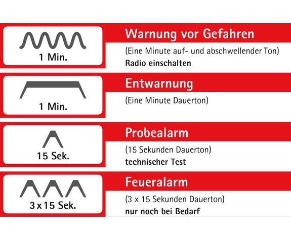 Achtet doch mal darauf, wie der Sirenen-Ton sich unterscheidet vom Ton zur Feuerwehr-Alarmierung. Immerhin dienen die Sirenen dem Bevölkerungsschutz – und dann solltet ihr auch wissen, was die Töne bedeuten, oder? 🙂