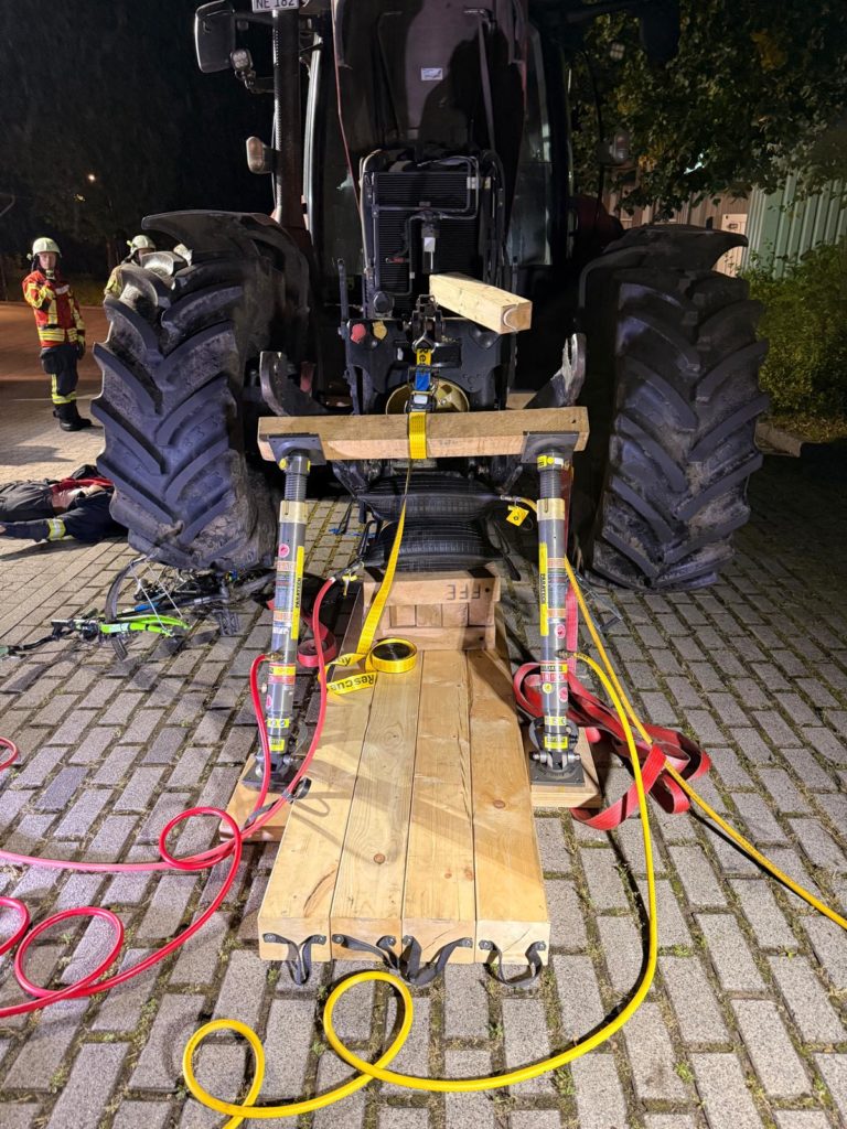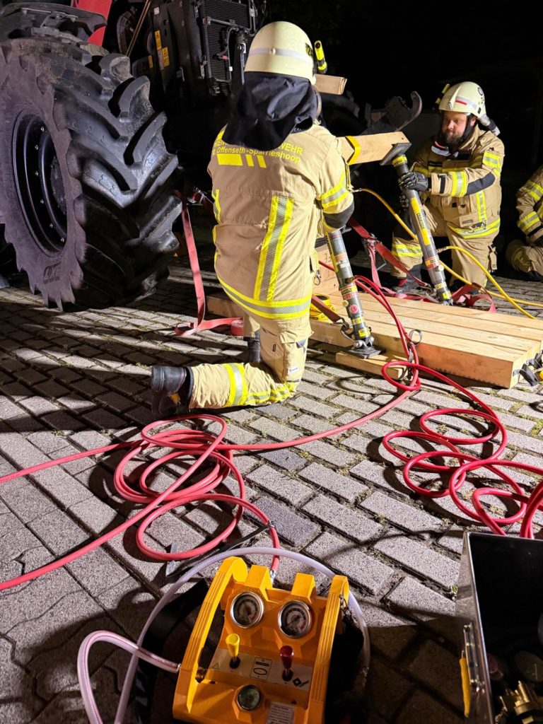 mit denen aus Elmshorn getroffen, um das für uns neue Material zu beüben, das in Elmshorn schon seit längerer Zeit im Einsatz ist – hier das so genannte Paratech-System zur schweren Technischen Rettung.