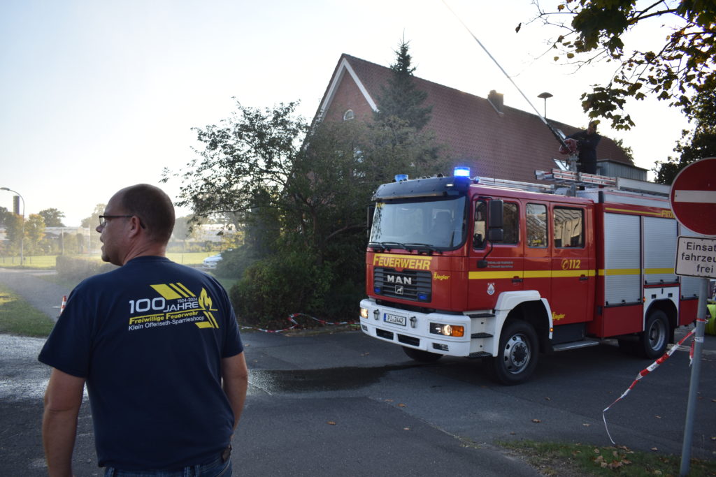 Es handelte sich um so genannte nachbarschaftliche Löschhilfe: der Einsatzort war nicht in unserer Gemeinde, sondern in Bokholt-Hanredder. In der Lagemitteilung vor Ort berichtete uns die Einsatzleitung von zwei vermissten Personen im mit Brandrauch beaufschlagten alten Kindergarten der Gemeinde. Erst zu diesem Zeitpunkt stellte sich heraus, dass es sich um eine (unangekündigte) Alarmübung handelte.