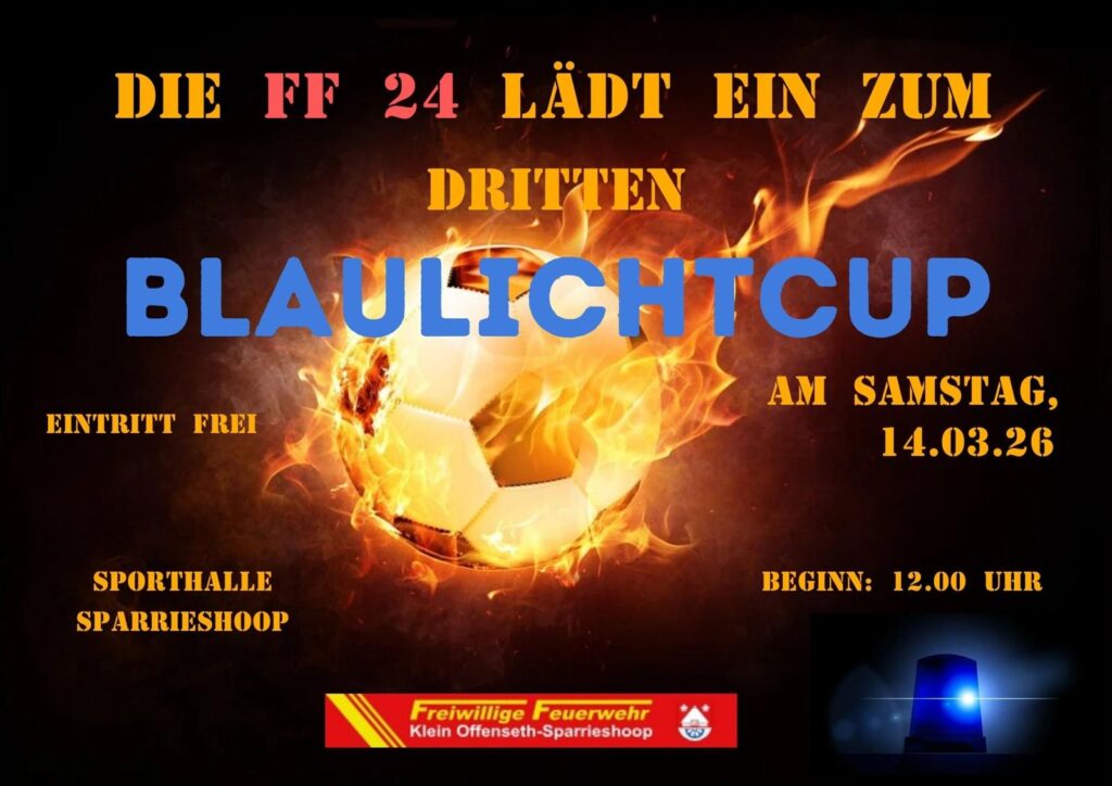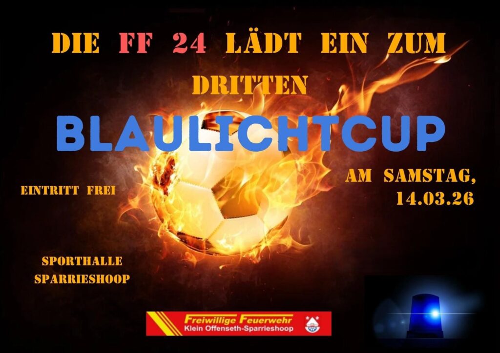 Die Blaulichtfamilie zeigt euch ihr Können nicht nur im Bereich der öffentlichen Sicherheit, sondern auch beim Kicken ⚽. Hochkarätig besetzt, unter anderem mit dem Titelverteidiger aus dem letzten Jahr, der Feuerwehr Elmshorn, starten wir am Samstag, 14.3., in den Blaulichtcup!