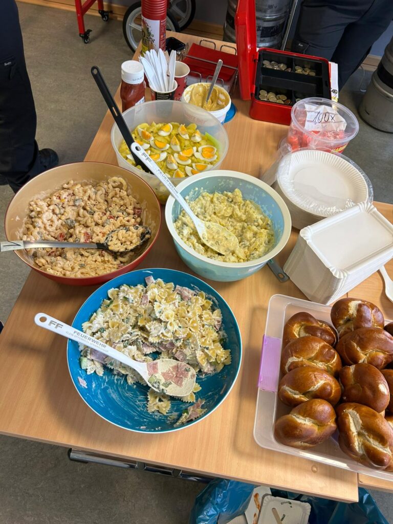 Neben den 26 Kameraden der Jugendfeuerwehr sind auch einige der Einsatz-, der Verwaltungs- und der Ehrenabteilung der Einladung gefolgt sowie auch die Bürgermeisterin, Vertreter der Gemeinde, der Grundschule, des Kreisfeuerwehrverbands und der Jugendfeuerwehr Appen. Zuerst gibt es einen Imbiss , den die Eltern zubereitet haben – vielen Dank, das war echt lecker!